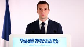 Le président et candidat aux européennes du Rassemblement national a tenu une conférence de presse durant laquelle il a déploré une "sud-américanisation de la France" en matière de trafic de drogue.